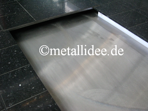 Angefaste, gravierte Edelstahl Bleche mit Spezial Kleber.