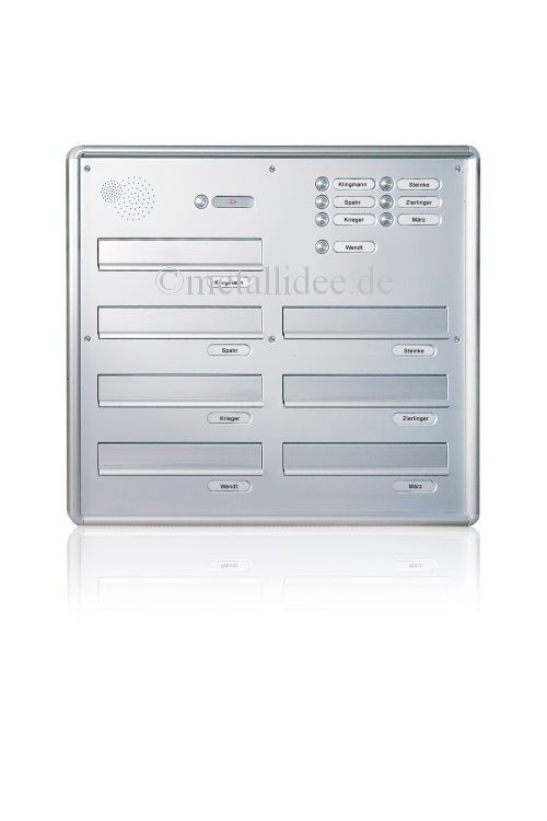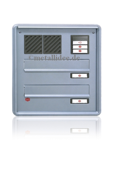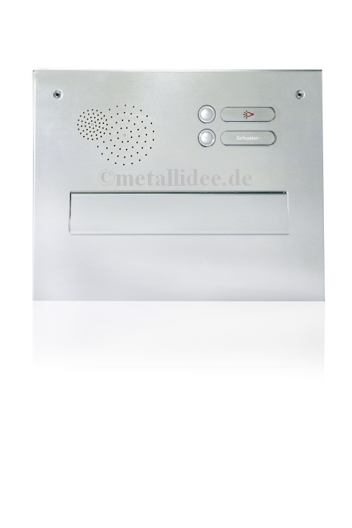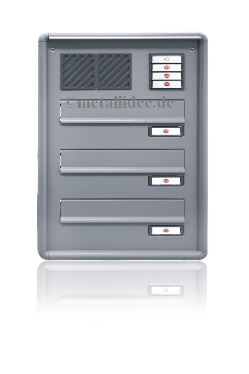 | Briefkasten Sonder #19 - Bild links: Bestell-Nr. 17-0-17112 Kasten Modell radio, Gehäuse aus korrosionsgeschütztem und pulverbeschichtetem Stahl, Kipptür und Einwurfklappe aus EV1 eloxiertem ALU, Namensschild in RSA -Antivandalismus-Ausführung.