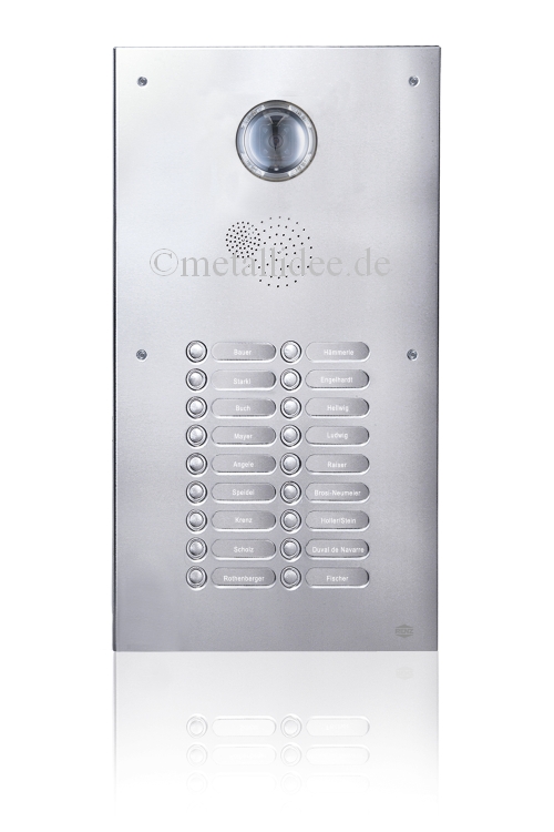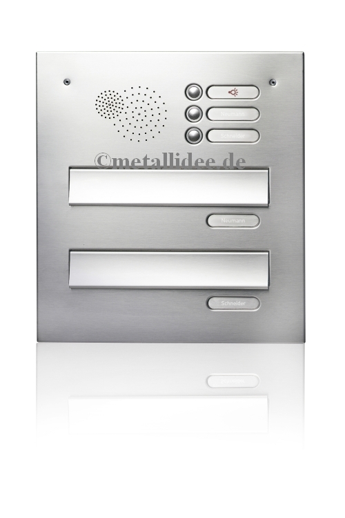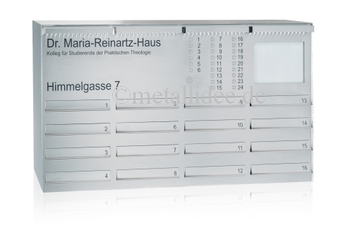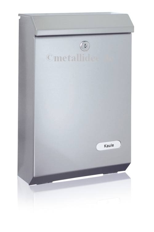 Bild rechts: Bestell-Nr. 17-0-17173 Kasten Modell canto, Gehäuse, Kipptüre und Einwurfklappe aus Edelstahl V4A, Namensschild in RSA-Antivandalismus-Ausführung.