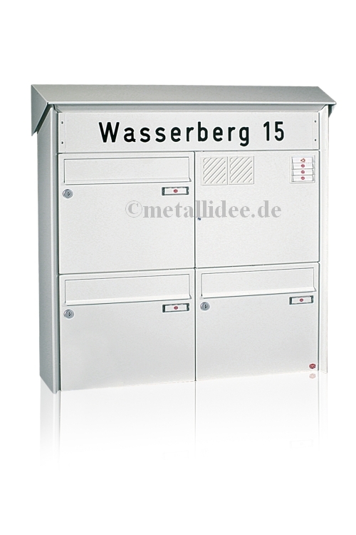 | Briefkasten Sonder #3 - Bild links: Kastenformat 370 x 110/330 x 270 mm, Hausmitteilungskasten 370 x 330 x 270 mm, Zeitungsklappen, RSA, zweites Namensschild mit Beschriftung "Werbung, nein danke!",