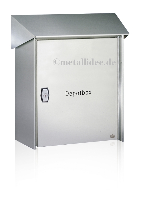 | Briefkasten Sonder #23 - Bild links: Bestell-Nr. 14-0-14570, Kastenformat 300 x 440 x 265-410 mm, aufklappbare Stahl-Frontplatte mit