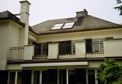 In vorh. Betonbrüstungen vier angefertigte verz. Balkongeländer im Farbton DB 703 hergestellt und montiert.