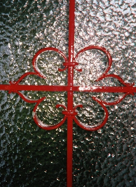 Für den Innenbereich (als Zierde/Schutz) an unserer Tür aus geschwungenen Bögen, rot lackiert.