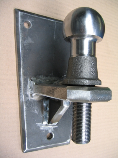 Eine Halteplatte zur Aufnahme einer Anhängerkupplung in der Garage. Wandmontage.