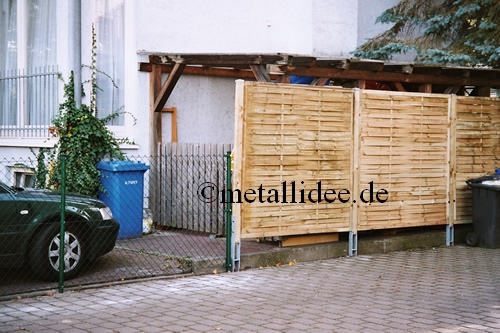 Einen Holz-Sichtschutz, Maße 1800x1800, 6 lfdm. mit Maschendraht 50x50, 1250mm hoch,grün als Abgrenzung.