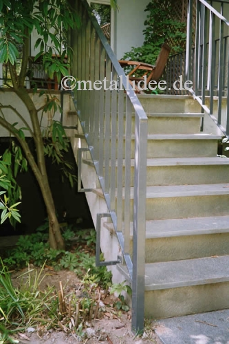Lösung Metallidee #021: Teppengelaender Geländer aus Flachstahl mit Obergurt Flach 40/8 und Untergurt Flach 30/8.