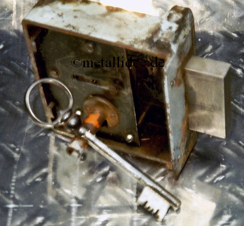 Ein schweres Riegelschloß wiederhergestellt und restauriert. Den Riegel erneuert und einen Schlüssel hergestellt. Spezialanfertigung.