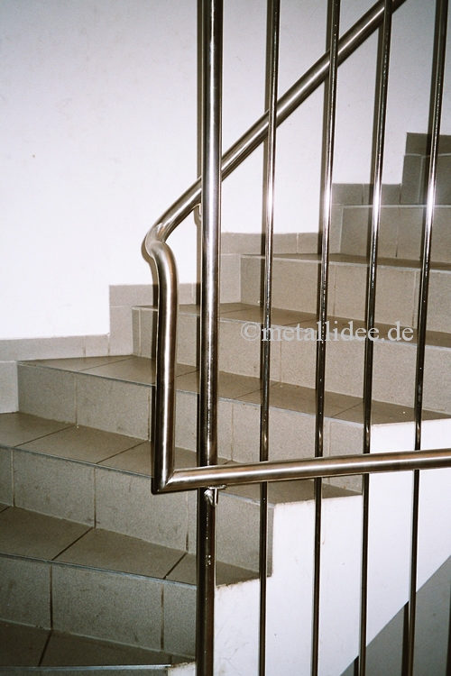 Eine Edelstahlharfe (poliert) Rund 42/16 mit einem individuell angepaßten vorort montiertem Handlauf.