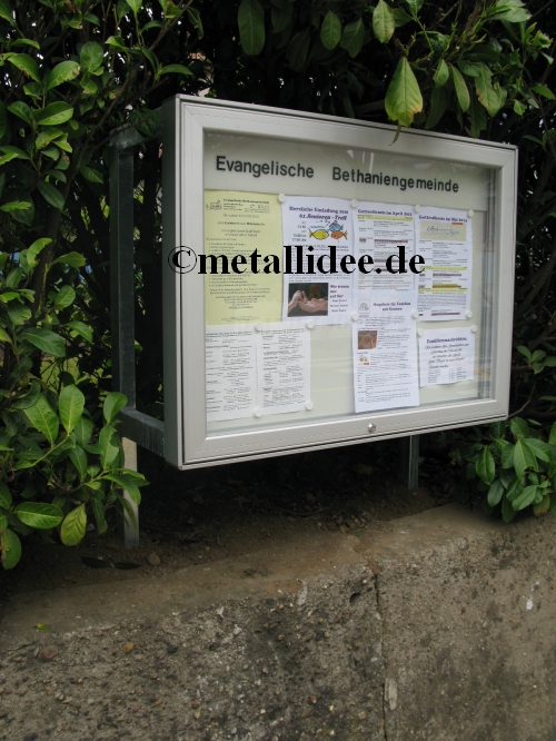 unten mit Beton im Boden. Auf die Konstruktion einen Alu Schaukasten
